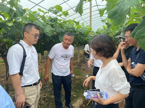 随后,伟德国际1946一行在杨勇书记的带领下参观了“全国最美乡村示范点”——群力村的全貌。老师们参观了东西湖葡萄种植展厅,了解群力大队葡萄种植的历史背景和特色,进入葡萄园实地参观葡萄的种植技术。近年来,在街工委的支持下,群力社区立足葡萄产业特色,以“葡萄小镇”建设为重点,大力推动一二三产业融合发展,不断延伸产业链、打造供应链、提升价值链,走出了一条科学有效、农民受益的产业发展之路。老师们深刻体会到了农业现代化为乡村振兴带来的强劲动能,并表示之后将以此案例开展乡村振兴治理的研究。