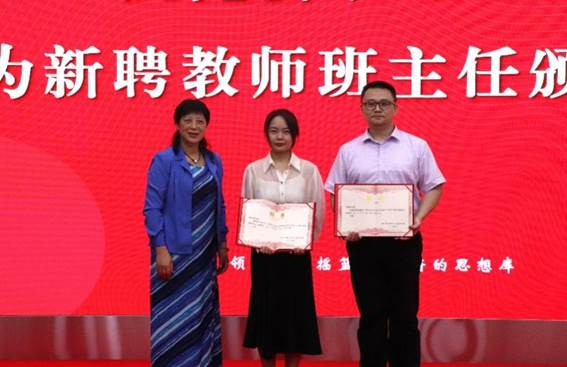 公司党委书记刘芳为新聘教师班主任代表颁发聘书。