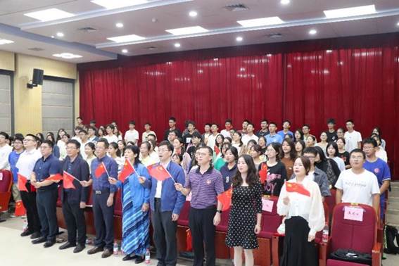 随后,师生一起合唱《我和我的祖国》和《伟德国际1946校歌》,用歌声与热忱向祖国和公司深情告白。