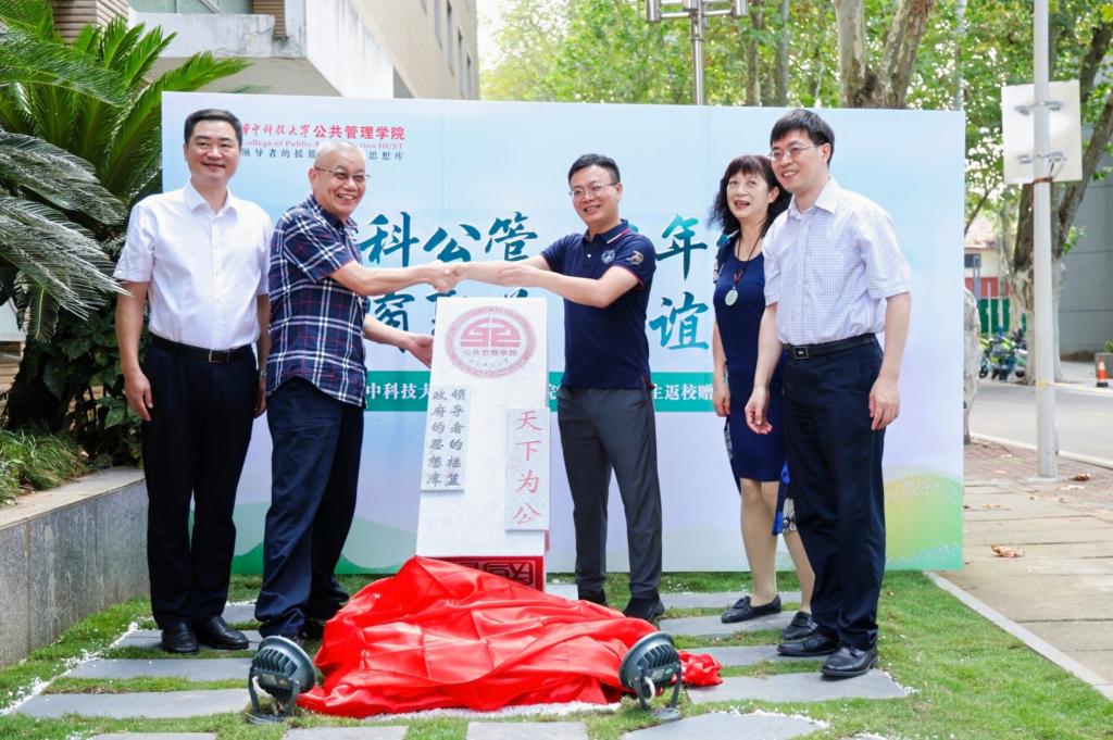 上午,捐赠纪念碑揭幕仪式举行。徐晓林、戴则健、刘芳、张毅与员工代表周谋知共同为捐赠纪念碑揭幕。纪念碑由2000级全体本科员工捐赠,刻有院徽,院训“领导者的摇篮、政府的思想库”,以及公管团队建设理念“天下为公,管以善治”等。
