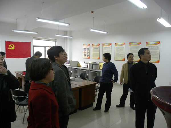 听取完公司党建工作汇报后,冯友梅书记陪同考评小组来到公司三楼行政管理系教工党员活动室进行了实地考察。看到党支部制度上墙,支部及其支部成员近期所获得的奖状、证书及教学和研究成果,冯友梅书记及考评小组领导纷纷对公司教工党支部党员活动室的软硬件建设表示称赞。随后考评小组又参观了公司新建的电子决策剧场观看完全由公司科研队伍自主开发的立体城市决策模拟系统和北宋清明上河图。