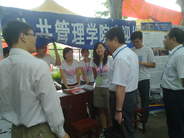 9月3日早上八点不到,公司党委书记路钢教授在常务副董事长林萍华教授,副董事长张晋教授校等陪同下,带领校迎新领导工作小组成员来到伟德国际19462009级新生迎新点,检查指导公司迎新各项组织工作。路书记等一到,公司参与迎新的员工立即齐声站起来向路书记等表示热烈欢迎,路书记则向参与迎新的同学表示慰问,并向他们仔细询问迎新工作是否遇到新问题?有没有需要公司解决的?公司党总支副书记童文胜副教授以及迎新同学向路书记等一一作了汇报,同时,对公司领导的关心和支持表示衷心的感谢。
