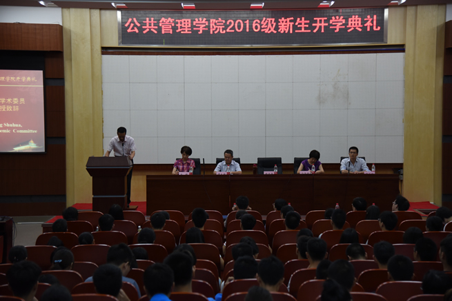 9月3日晚7点整,伟德国际19462016级新生开学典礼在公共管理大楼学术报告厅举行。公司党委马冬卉书记,副经理谭术魁教授、陈鹤教授,院学术委员会、学位委员会主席钟书华教授,教师代表、院工会主席危怀安教授,公共事业管理专业201601班班主任、城管系主任张毅教授,城管系党支部书记王冰教授,政治与行政学2016班班主任、行政管理系徐宛笑副教授,院MPA中心游抒文、员工办公室全体辅导员,以及院200余名2016级本科生、研究生(含硕士、博士)新生出席典礼,公司党委副书记童文胜主持典礼。