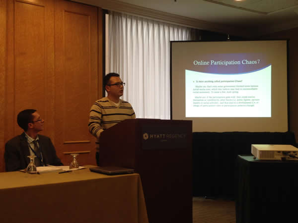 会议期间,博士生陈强与张韦分别应邀参与了专题小组研讨。其中,陈强参加了“中国城市中的社会公平和政府绩效”专题讨论,并做了题为“Why Chinese Local Government Seldom Use Social Media for Civic Engagement: The role of public administrator’s trust in Citizens”演讲;张韦则参加了“智能政府”主题下“电子政务的国际比较”专题讨论,并做了题为“Seeking Like a State: How certain Chinese government-initiated online engagement programs have failed”的演讲。两位博士研究生从自身的研究专长出发,与参会的其他代表进行了深入交流和讨论,得到与会者的一致肯定。