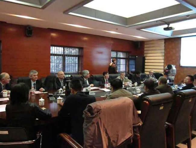 11月26日,在法国” 法中合作促进中心”的推动下,法国南部地区考察团一行11人考察公司。经理徐晓林教授,党总支书记马冬卉,副经理谭术魁教授等公司领导亲切会见考察团成员,城市管理系系主任张毅教授、电子决策剧场负责人王安华、建规公司陈锦富教授、城市管理系黄栋副教授、陈涛副教授、张文学博士、朱建平博士等参加了会见。