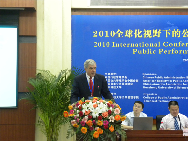 15日上午还进行了学术研讨。James Perry教授回顾了自1990年《公共管理评论》第50卷刊出Perry和Wise关于“基于公共服务的动机”研究以来的公共服务动机理论研究的发展脉络,对公共管理、社会与行为科学领域围绕该文提出的命题所进行的后续研究进行了评价,认为公共服务动机将是公共管理研究和公共部门人力资源管理改革的一个极具发展潜力的方向,未来十年的研究要在既有研究的基础上不断探索新的方向;徐勇教授对后税收时代的乡村治理进行了讨论,认为其重心和导向正在由管治走向公共服务,并提出了政策建议;张康之教授提出,政府已经尝试过“政治的路径”、“科学的路径”和“市场的路径”等三种提供公共服务的依据或路径,由于新的历史转型的需要,政府需要开辟“伦理的路径”。