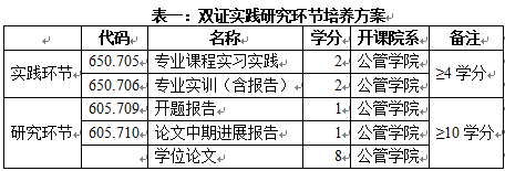 2. 双证:完成培养方案要求的课程和学分,实践、研究环节除最后一项“学位论文”外,其他每项均需提交一份经导师签字同意(参加答辩时交给答辩秘书),用A4纸打印的3千字以上的报告,格式参照开题报告,实践研究环节培养方案见表一;