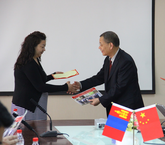 5月13日上午,研修班的结业典礼在公司举行。公司国际教育公司副经理赵晓峰,公司经理、副经理,系主任等以及蒙古Zasagt Khan大学的董事长、校董和研究生院经理共同出席了此次结业典礼,并就双方的联合办学等事宜进行了洽谈。