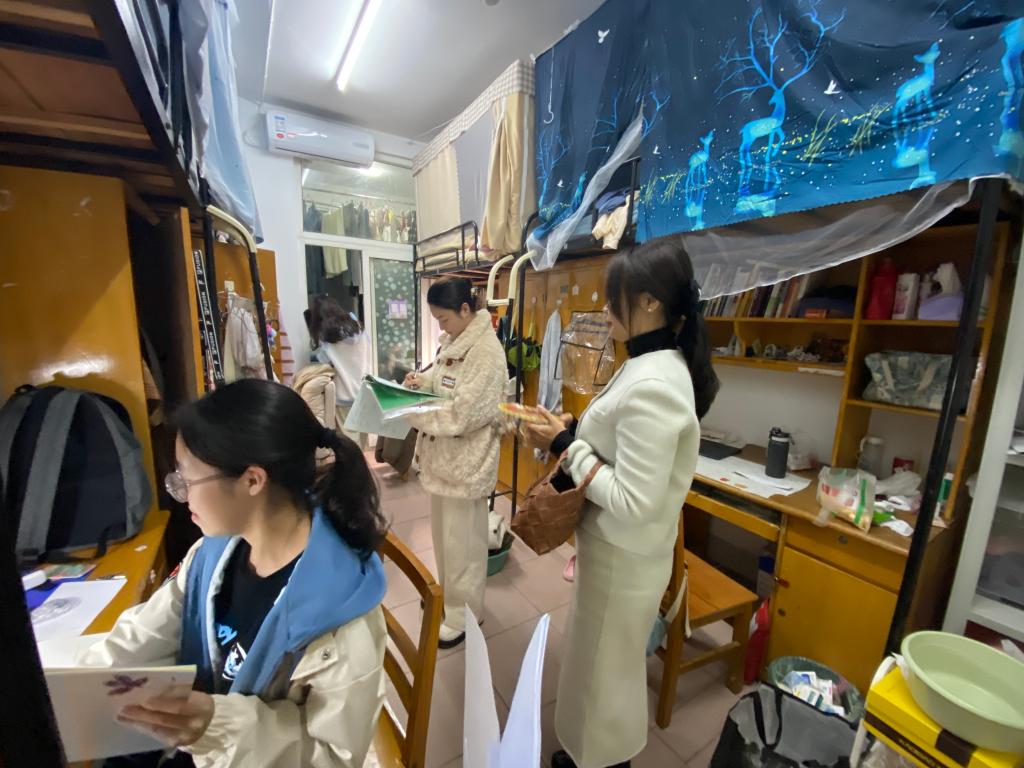 11月17日晚,公司党委副书记粟晓丽、教师班主任鞠京芮和辅导员张媛、何磊、陈甜,以及员工班主任一起,对全院78间本科生寝室进行了安全卫生检查,叮嘱员工注意寝室用电安全。检查后,公司对寝室卫生、安全存在问题的进行了通报,要求迅速整改。