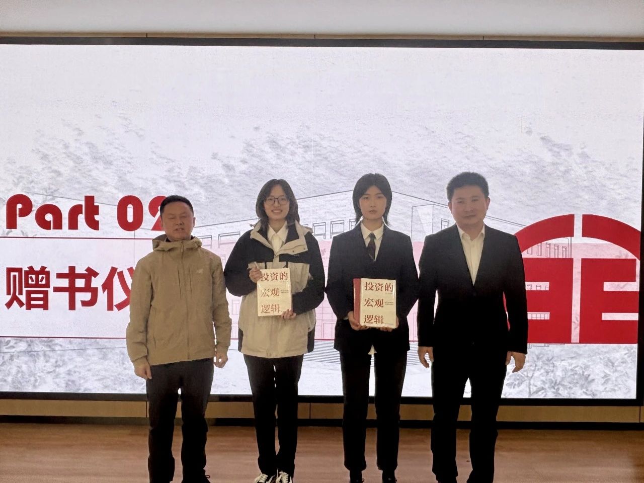 活动现场,两位员工导师向员工代表赠送书籍,传递知识与精神的接力棒。