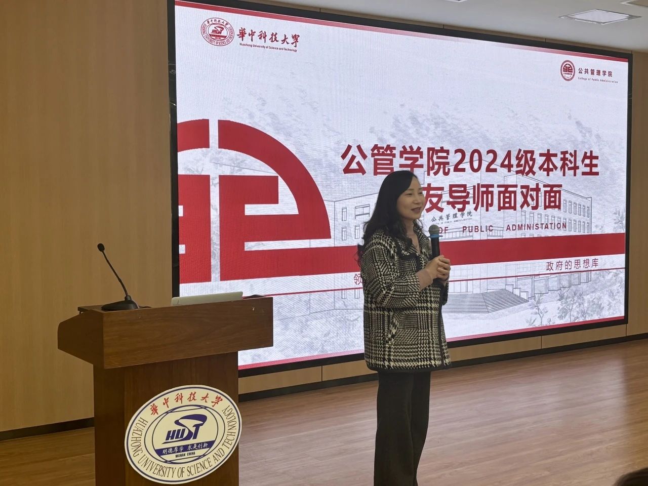 公管2401班团支书陈梓童从年级基本概况和班团建设两个方面向两位员工导师汇报班级建设进展。她通过对大一年级自入学以来开展的社区实践、学术沙龙、志愿服务等多元活动进行介绍,展现公管学子的青春风采。她谈到,各班通过制定共同愿景、优化班委分工、组织特色活动等方式,打造目标明确、互助共进的集体氛围。