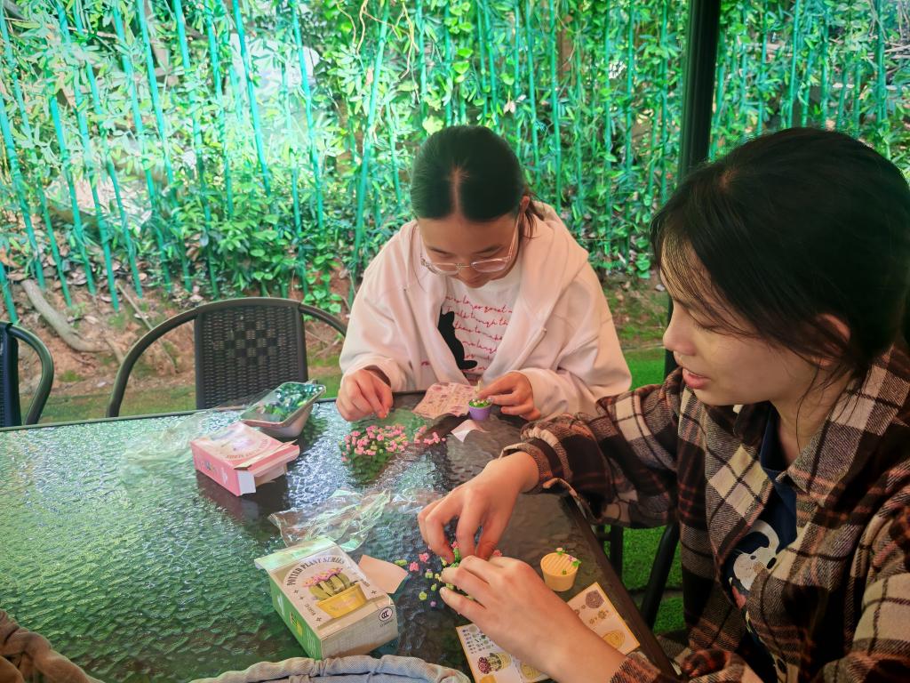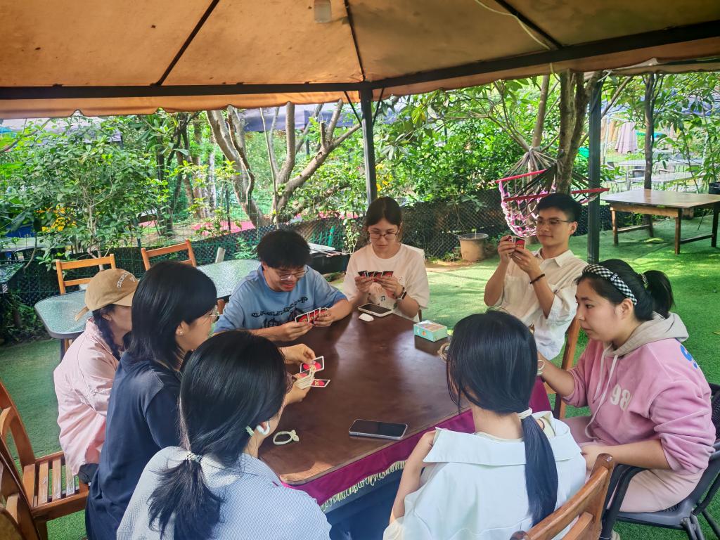 心理疗愈环节,同学们围坐在一起,分享着日常的心情点滴。在积木拼搭与黏土画制作环节中,同学们用双手将压力具像化,再通过创作与重组将压力释放。在纸牌环节中,同学们用游戏的形式弱化了人际交往中的紧张感,让彼此的心灵在轻松的氛围中相互靠近。