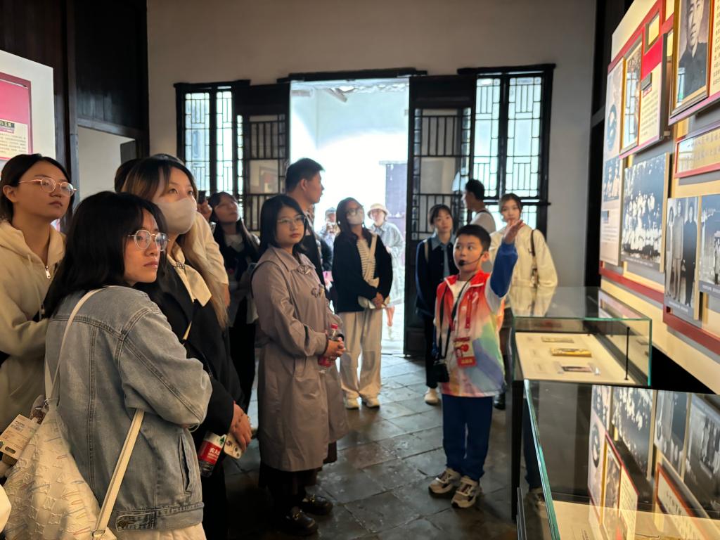 艰难困苦,玉汝于成。在毛泽东旧居纪念馆,2303班团支部书记冯鑫与武汉大学第二附属小学唐翎轩、唐浩轩,共同介绍了毛泽东同志在武汉期间的生活和工作,并引导同学们参观毛泽东同志曾使用过的书桌、文具以及他亲笔书写的文稿。同学们感受到了厚重的历史感,并感慨毛泽东同志对中国革命事业的坚定信念和不懈追求。