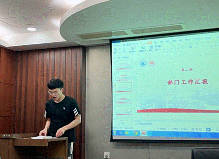 纪检部部长吴韵驰从纪检部的日常工作和“公管之声”宣讲团工作进行了回顾,并对本部门的工作模式、工作成效进行了简要总结。