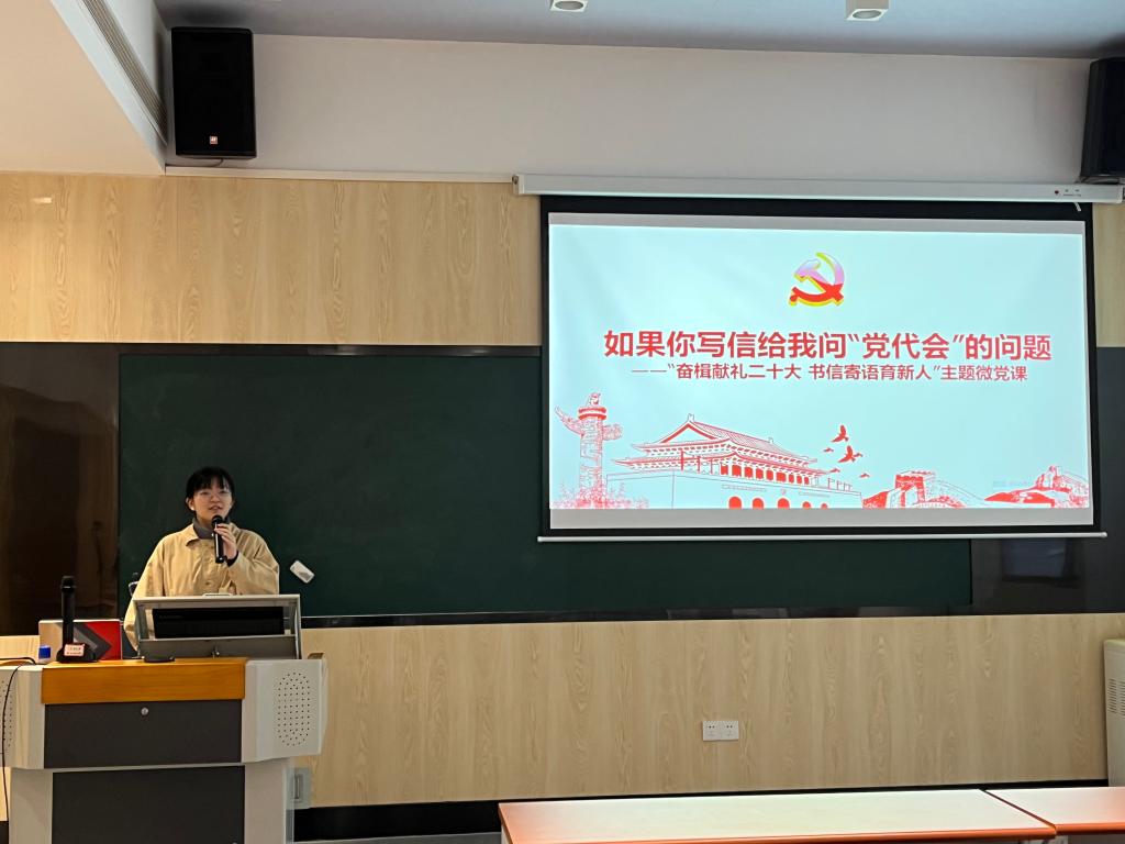 其次,伟德国际1946研究生红色理论学讲团的朱轶凡同志给大家讲授了微党课《新时代外交——科技外交中的“人类命运共同体”》。“人类命运共同体”是习近平外交思想的核心。当前,我国所面临的科技外交环境深刻而严峻,中国青年要以自身力量不断为中国的科技发展做出贡献,高举构建人类命运共同体旗帜,用人类命运共同体理念引领科技外交,携手建设更加美好的世界。紧接着,来自硕士2202党支部的唐晶玉同学结合书信交流的活动主题,围绕迎接二十大的活动热潮,从给孩子们的来信进行答疑的新颖视角出发,向大家介绍了党代会的相关知识,加深了同学们对党代会的认识和了解。