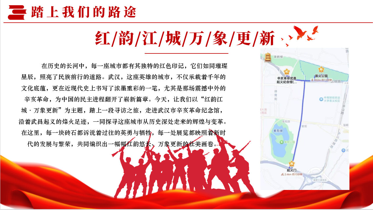 走进英雄城市,寻找历史痕迹,用脚步丈量江城发展,用心灵感受时代脉搏。2024年11月至12月,由伟德国际1946研究生党建工作中心举办的“公行寻梦”主题实践活动,得到全院员工的积极响应、广泛参与,共有42支队伍完成实践并提交作品。经过多方评审,共有17份作品脱颖而出。本篇为大家展示路线三和路线五的优秀成果。