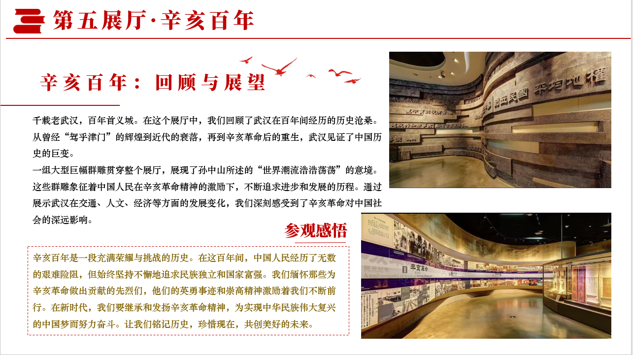 重走武昌起义之路,古朴庄严的历史建筑与展品承载了革命历史的厚重感,让我们看到了革命时代的奋斗历程,也让我更加深刻的感受到了革命先辈为民族独立和人民自由付出生命的坚毅与勇敢。我们作为时代青年,更是应当铭记历史、不忘初心,继承和发扬辛亥革命精神,在新时代用“砥砺勇向前”革命精神、以一名共产党员的标准严格要求自己,不断提高自身能力,为中华民族伟大复兴的中国梦而奋斗。