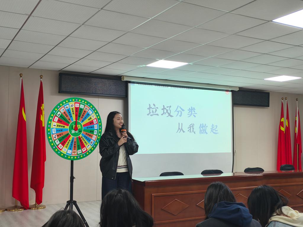 行政管理专业本科生党支部书记祁智惺从理论部分进行垃圾分类知识宣讲,介绍可回收物、厨余垃圾、有害垃圾和其他垃圾四种常见的垃圾分类和划分标准。城市管理系研究生第二党支部副书记黄文佳推出“分类大转盘”游戏,居民转动转盘回答对应垃圾归属,将分类知识转化为闯关挑战,在寓教于乐中巩固理论学习成效。现场气氛热烈,居民纷纷点赞:“有趣又长知识,以后还想学!”