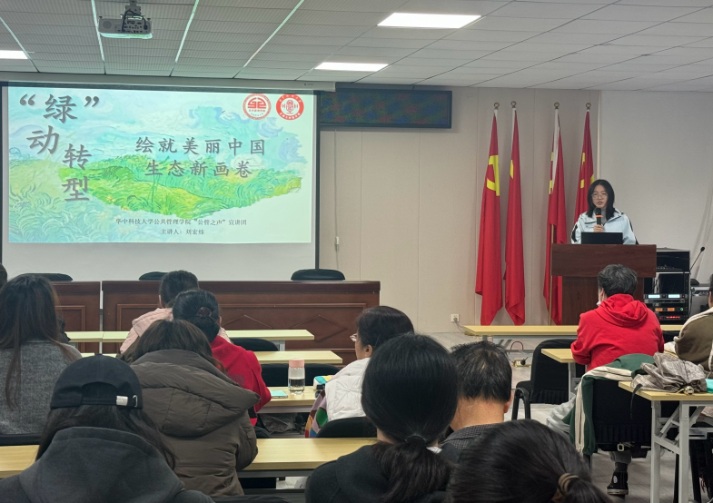 “公管之声”宣讲团讲师、本科生党员刘宏炜以“绿动转型:绘就美丽中国生态新画卷”为主题讲述微党课,分享了我国深化生态文明体制改革的蓝图和路径以及华科大的绿色行动实践。“持之以恒,久久为功,我们携手并肩,坚持人与自然和谐共生的观念意识,以实际行动绘就美丽中国生态新画卷!”她号召在场居民和同学们从身边小事做起,提升生态文明意识、践行绿色生活方式、积极宣传推广绿色理念,引导全社会汇聚“绿色”生活的磅礴力量。