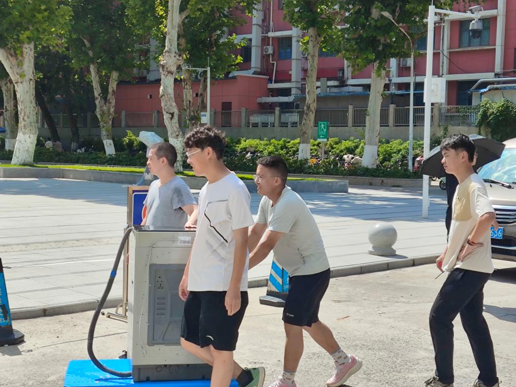 搬迁过程中,志愿者们精细服务、精准帮助,一对一帮助同学们完成宿舍搬迁工作。面对行李多、物品重、搬运难等实际问题,志愿者们主动帮助打包整理、行李标记、上下搬运,并协助安装新宿舍洗衣机、归置物品,全力保障搬迁同学无后顾之忧。
