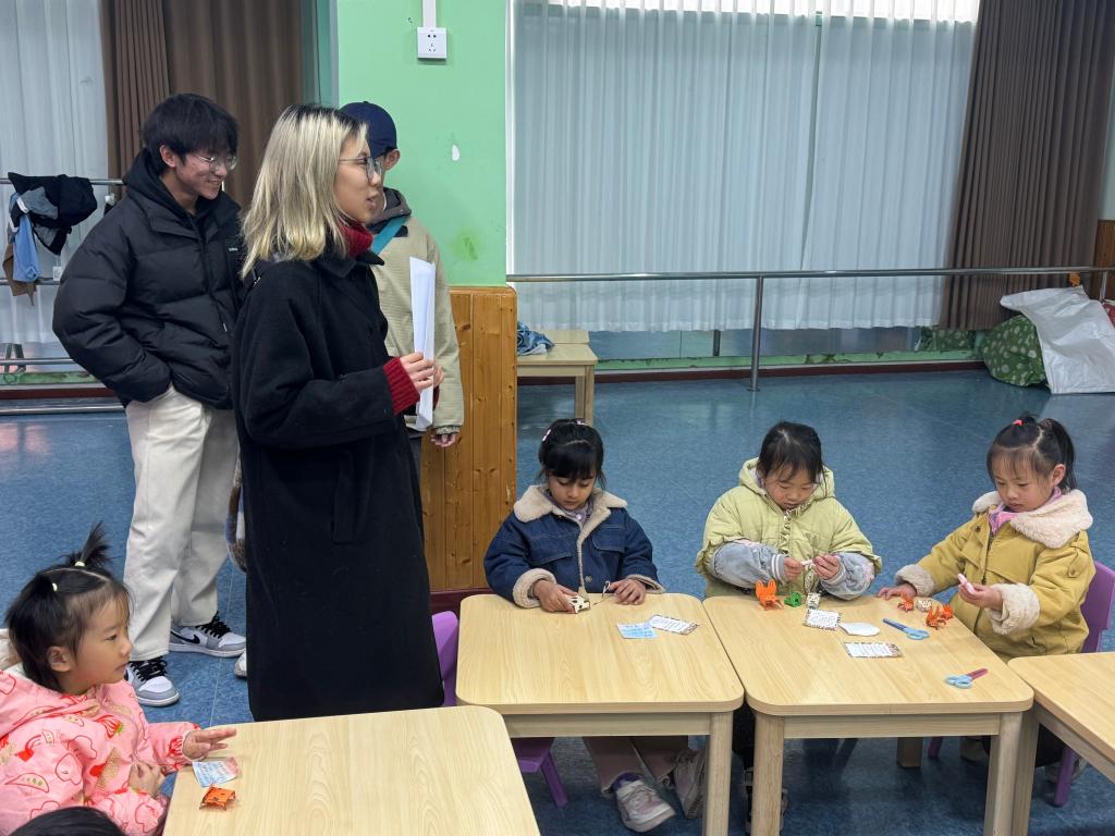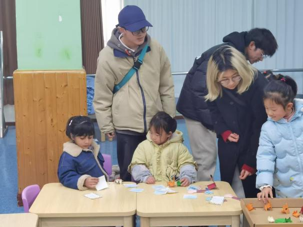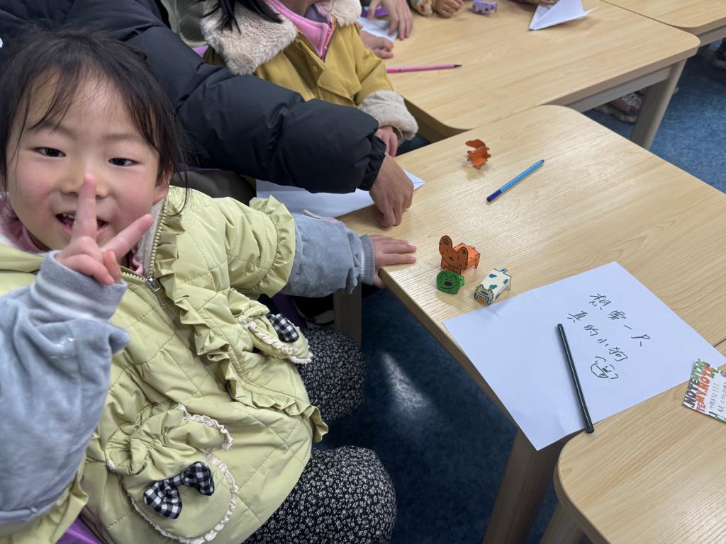 志愿者们提前准备了形态各异的纸小狗,并在便签纸上一一对应写下纸小狗的特征,静待小朋友们前来寻觅自己的特别伙伴。“小狗的耳朵是耷拉着的,身上有黑色斑点”“场上唯一的蓝色小狗”......小朋友们充满了好奇与期待,迅速跑到摆放纸小狗的纸盒旁仔细观察,将便签纸上的文字与眼前的纸小狗一一对照。在这个过程中,小朋友们相互帮助,大家都成功找到了与自己心灵相通的纸小狗伙伴。“认领纸小狗”不仅拉近了志愿者和小朋友们之间的距离,也教会了他们以开放的心态去包容和接纳差异,感受友谊的温暖和力量。