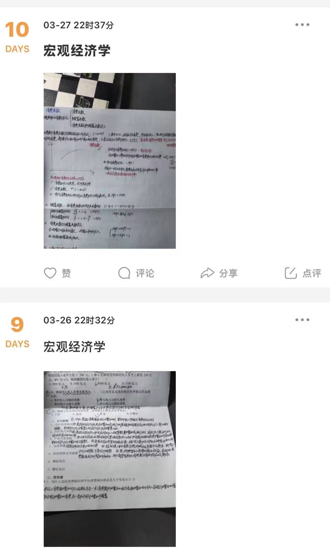 紧扣公共管理专业特色,同学们在课程学习中深入探索、主动思考,从《宏观经济学》的复杂理论,到《当代中国政治与政府》的深刻见解,再到《房地产管理》的实用体会,通过每日笔记打卡将繁杂的知识点进行系统梳理与条理归纳。在这个过程中,大家不仅实现了“学中记、记中思、思中进”,更将专业学习与良好习惯完美融合,让学习效率和知识掌握程度都得到了显著提升。