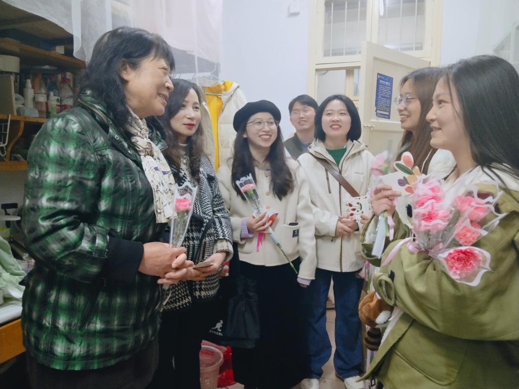 活动结束后,刘芳一行走访了紫菘2栋公司女生宿舍,给同学们送去美丽的鲜花和真挚的祝福。刘芳关切询问了大家在校学习和生活情况,叮嘱她们做好节日安排,更要记得给家中长辈致电祝福。走访毕业年级寝室时,刘芳特别关心同学们的学习和工作情况,勉励同学们要不断钻研专业知识、练就过硬本领、珍惜毕业时光,将来成长为祖国和人民贡献智慧和力量。