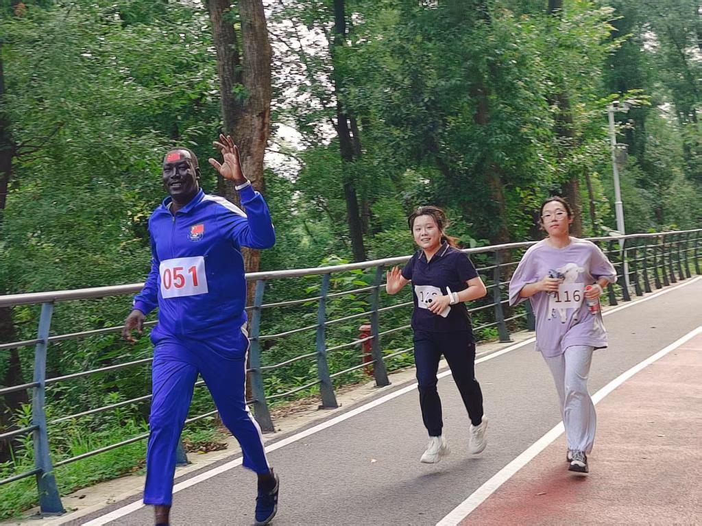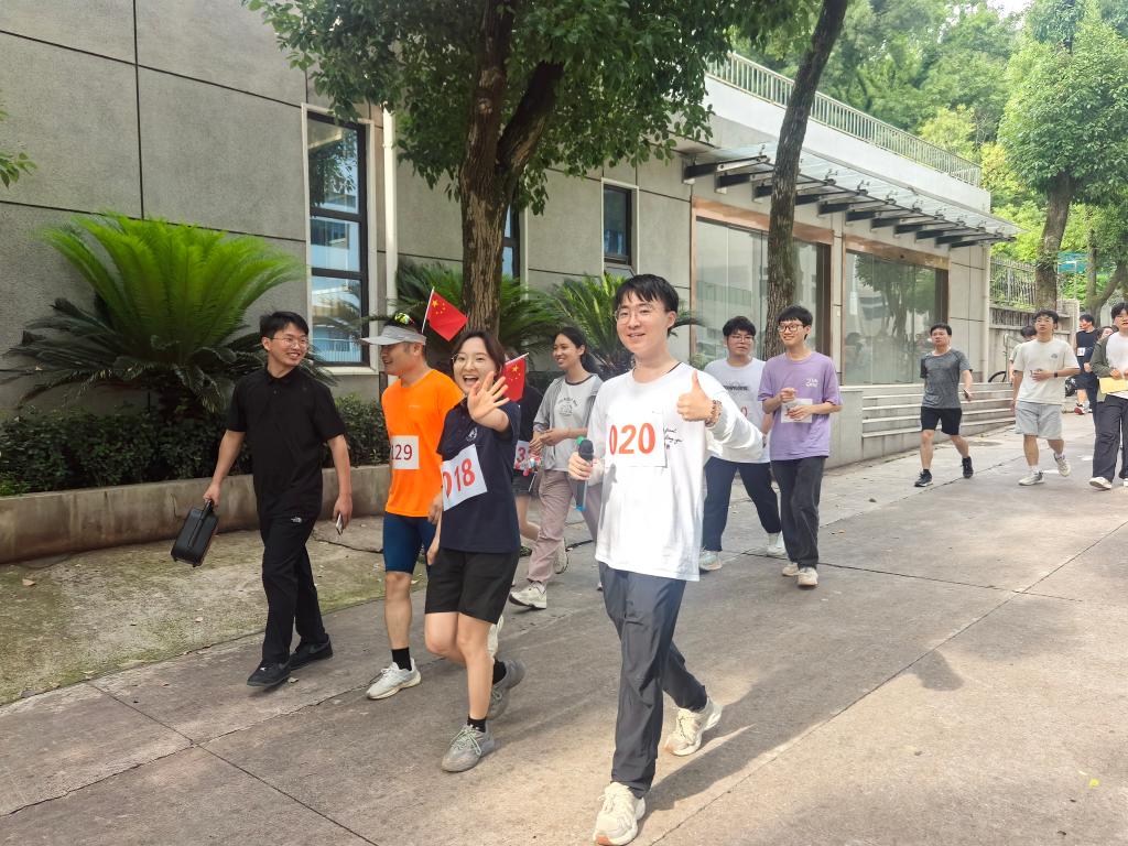行管2401班李爽同学用中英双语介绍了活动路线与比赛规则。随后,在动感十足的音乐声中,师生沿着喻家山森林绿道奋力开跑。一路上,既有同学激情四溢地全力冲刺,展现出青春的速度与激情;也有三五成群的师生并肩前行,欢声笑语。大家一边奔跑,一边欣赏着喻家山的秀丽风光,感受“森林式大学”的生态美景和人文底蕴。