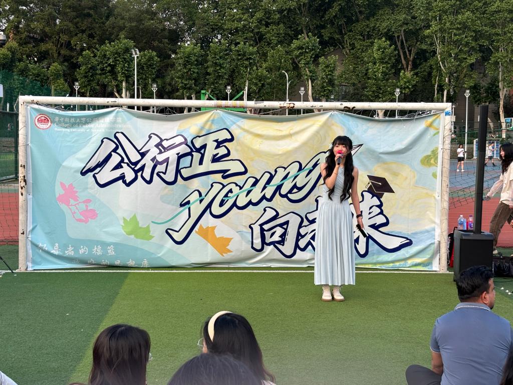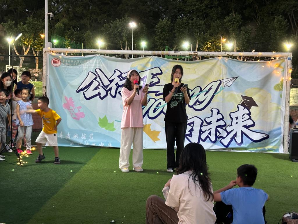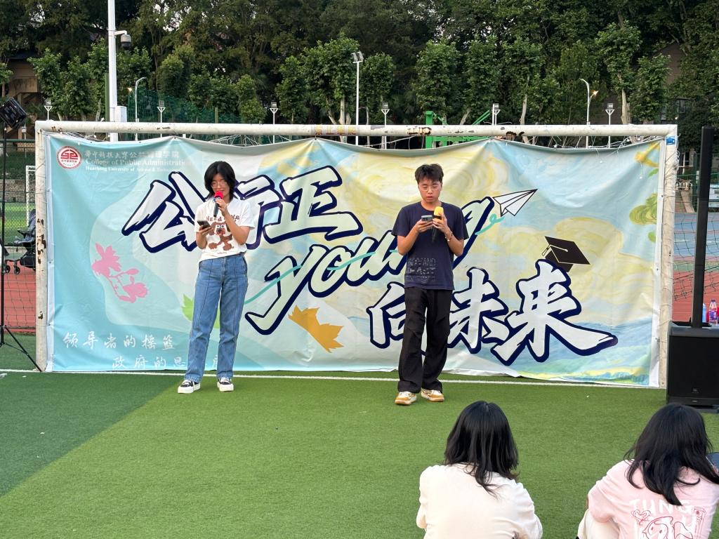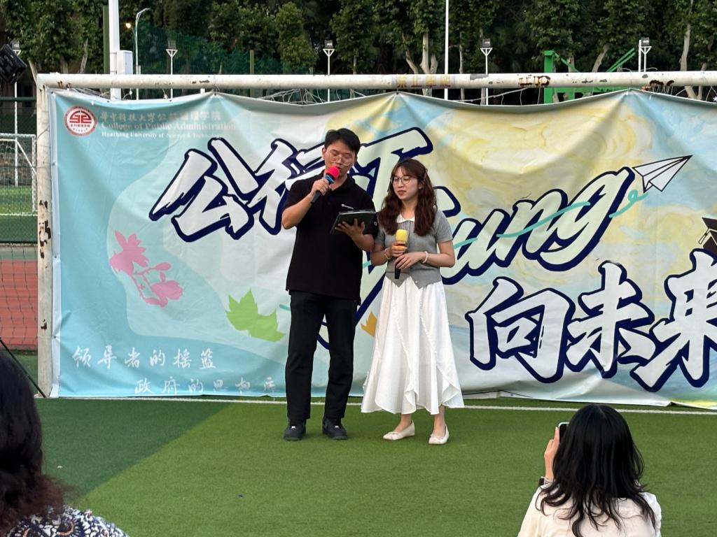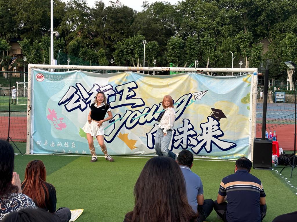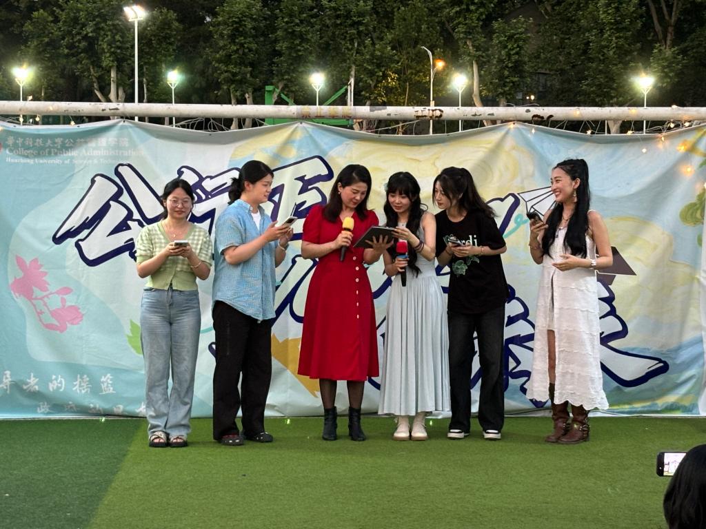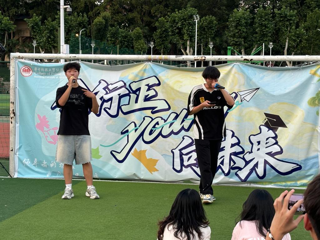 夜色渐深,舞台上公管学子的精彩节目接连上演,吸引了许多观众。