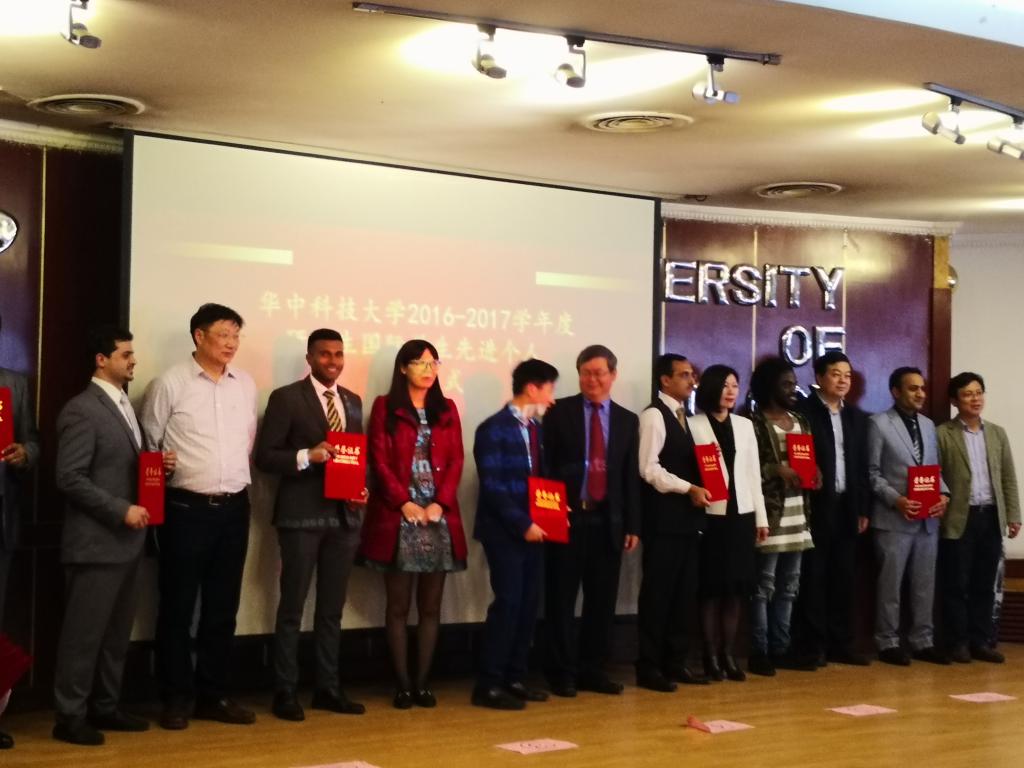 2018年3月30日下午,2016-2017学年度优秀国际生表彰大会在国际学术交流中心8号楼三楼会议室举行,副董事长陈建国、党委宣传部部长胡艳华、员工工作部部长易元祥、国际交流处处长廖小飞、国际教育公司经理刘俊华、教务处副处长周晖、研究生院副处长陈瑞红等领导参加活动。会议由国际教育公司副经理赵晓峰主持。各院系分管国际员工工作的负责人、国际员工研究生导师代表以及全体获奖国际员工参会。