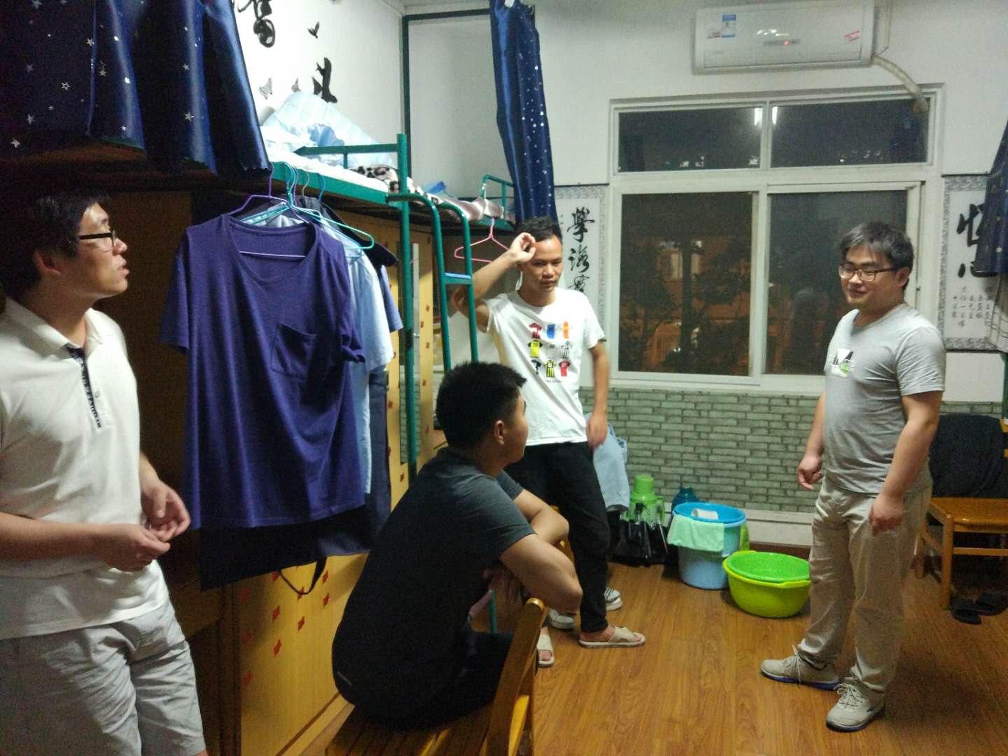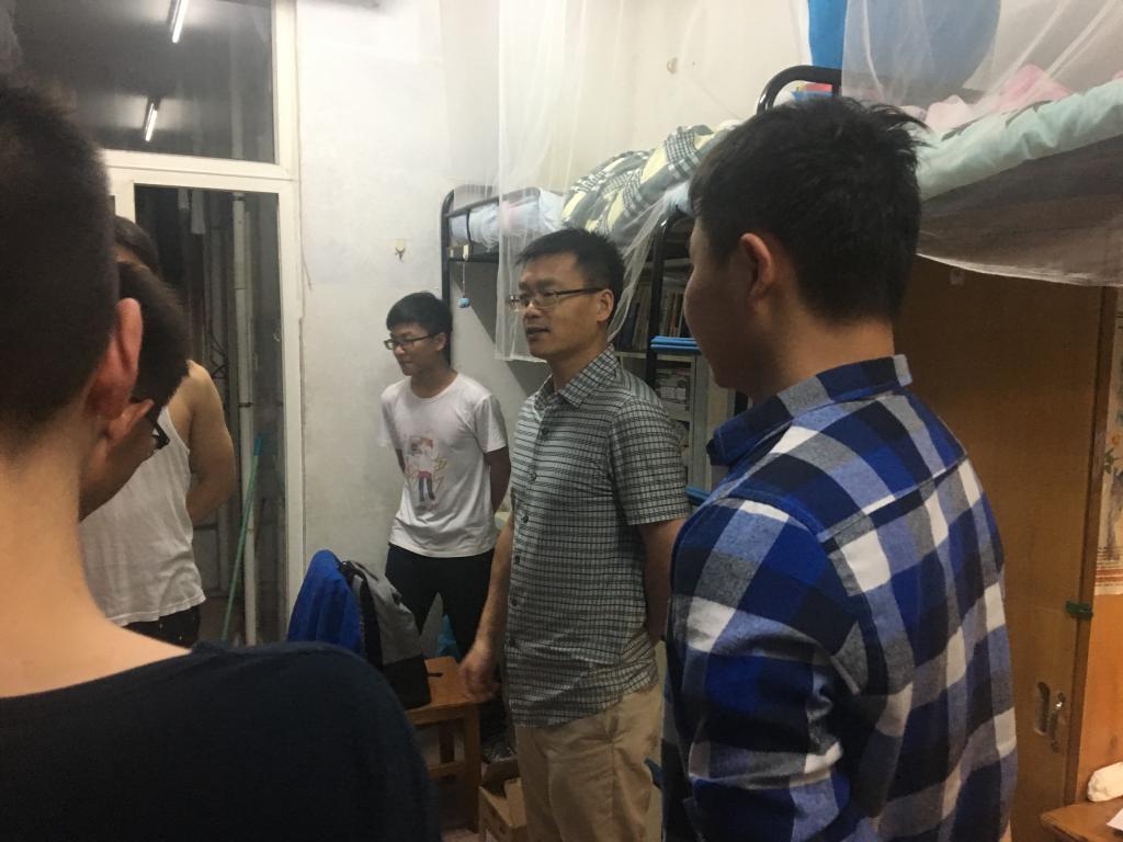 6月2日周六晚10:00,公司党委副书记童文胜带领员工工作办公室本科生辅导员徐川,本科生行政党支部书记陆逊、员工会主席牛琳、分团委副书记贾才鹏等一起抽检了公司所有男生宿舍,对于卫生状况和潜在的安全隐患进行了重点检查,同时也了解了所到宿舍的基本情况,并对部分宿舍员工的仪容仪表和礼仪进行了一定的指导。