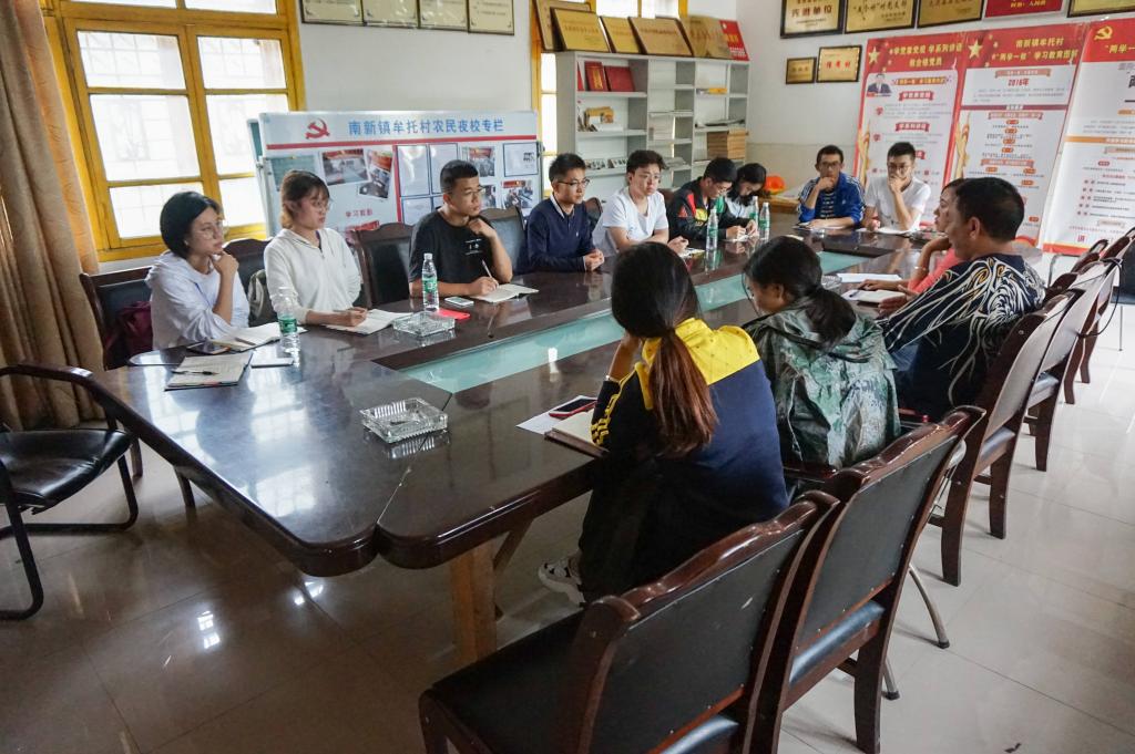 基层政府和基层自治组织是乡村建设的掌舵者。一到牟托村我们便联系上了村两委进行了座谈。村党支部张书记、村委会杨主任及第三组李组长向我们介绍了牟托村的基本情况,并介绍了地震救灾安置及震后重建的历史。实践队与他们重点交流了旅游业发展以及美丽乡村建设的有关内容,了解到了一家名叫“万豪文旅”的旅游公司对于当地旅游业发展起到的作用以及旅游公司引进到撤离前后的故事。在村内开展了几天的入户调研后,实践队获知了不少牟托村发展建设的信息,针对产生的疑惑与问题,7月9日,实践队与南新镇干部在牟托村进行了座谈,镇党委王书记和张副镇长向实践队重点介绍了万豪文旅公司与牟托村之间的合作与冲突,对队员们提出的问题进行了耐心细致的解答。两次与当地基层干部细致的座谈让实践队全面了解到了牟托村震后乡村振兴以及基层治理的更多细节,看到了镇、村干部为建设好牟托村所做的一系列努力,也感受到了他们想要发展好牟托村的决心。