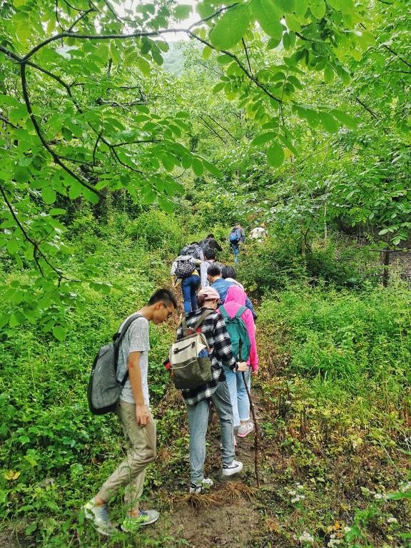 此外,为了深刻体会当地村民的生存条件,尤其是震前生存环境,探寻当地山地特点,重走茶马古道、长征之路,全队于7月8日开展了登山实践,沿着茶马古道上山去到村附近的一处高点——半坡。山路崎岖,小雨淅沥,道路泥泞,这些都给我们的登山之旅加了不小的难度。然而队员们并没有服输,最终从海拔1400米的牟托登顶海拔2200余米的半坡。山顶的神树下,队旗在飘扬,灰蒙的云雾里、翠绿的树丛中闪耀着一抹红。为更深入的了解羌族文化,全队还参观了茂县博物馆。在博物馆,我们看到了羌族的服饰和生活器具、当地的珍奇物种以及牟托村出土的文物。当地的灿烂文化给我们留下了深刻的印象。