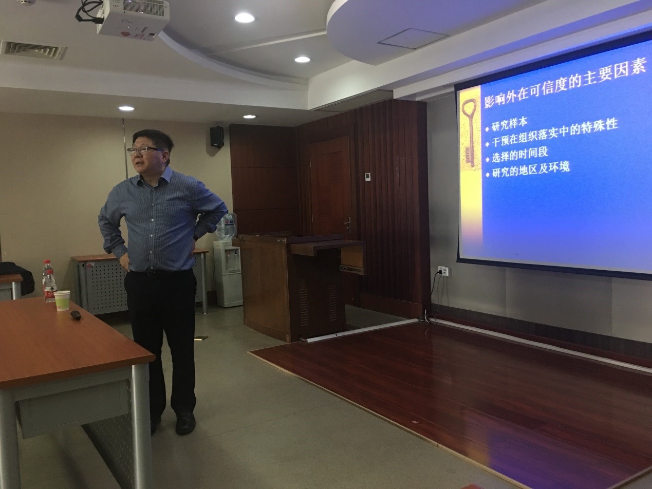 吴逊教授以新加坡国立大学李光耀公共政策公司2011级MPA员工关于印度尼西亚公立医院私有化影响的论文为例,向公司博士生展示了该员工收集统计数据的过程及处理方式,引入对公共政策研究性质的探讨。随后,吴逊教授结合实际案例,根据研究题目拟定、内容设计、基本逻辑、数据收集时间、数据性质、数据收集方法及分析方法等不同分类标准,对公共政策研究类型进行了解释说明,系统全面地将已有的研究方法一以贯之。在此基础上,吴逊教授就如何“改善既有研究的质量,提升文章的可信度”与同学们进行了互动研讨。其中,同学们提出的关于样本量(统计的有效性问题)、追踪研究(概念的操作化问题)、控制变量(干扰因素、就医人员比例、收费标准、共有资源等)等若干问题获得吴逊教授的肯定。同时,吴逊教授还补充说明了描述性研究、因果关系判定、研究适用范围、内在可信度等内容,提供了可供参考的实验思路借鉴,进一步增强了既有研究的统计效力。最后,吴逊教授明确指出,研究设计实际上就是有关数据收集与数据分析的计划,在作出一系列决定前,必须考虑到何时收集数据、收集数据的频繁程度、数据类型、向谁收集数据、在哪里收集、收集方式以及如何分析数据等各种因素影响。吴逊教授启示大家,当前运用定性与定量混合方法的研究越来越多,定性数据的分析技术也在不断成熟,同学们“两手都要抓”,加强不同研究方法的学习。