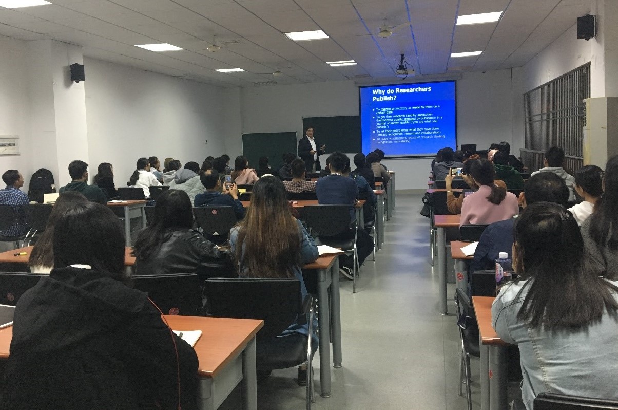 25日晚上,Gabriel Weimann教授以“学术工具包”为题分享了研究学术的途径。首先,Gabriel Weimann教授讲述了一个来中国访学的美国教授和农民之间发生的故事,指出了经验、交流的重要性。其次,教授认为研究学术有三个要点,即文章的发表、学术会议的参与、研究经费的获得。他认为发表文章之前应该先了解你自己所研究的主题和领域的论文,从中找出自己研究的主题所涵盖的期刊,并且应该了解该期刊的喜好,进行相应投稿的准备。同时他认为学术会议的参加应该选择自己所研究主题有关并且有知名度的会议,并且在会议之前做好被提问的准备以及ppt的制作,他认为这些会议的参加可以起到使大家更能了解自己研究方向的作用,也可以进行社会交往,是十分重要的。