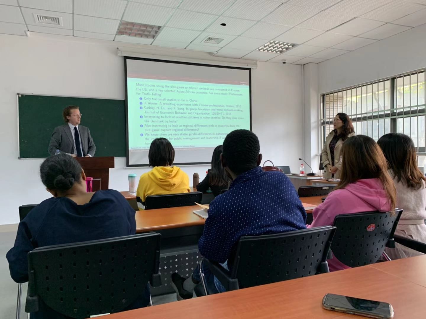 9日上午10:00-11:30,Olsen教授以“Dishonesty and corruption around the world – studies using the experimental dice game method”为题,向大家介绍他的相关研究。Olsen教授用非常有趣的游戏介质“骰子”引入主题,并利用骰子游戏作为实验模型,研究人行为的真实性,并在各个国家开展了实验,研究不诚实行为与官场腐败之间的联系,Olsen教授以风趣幽默的演讲范式和清晰的思维逻辑,一步步引导在场的人员进行思考。